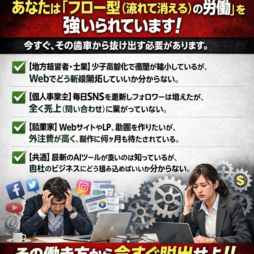- ☑️ 【地方経営者・士業】少子高齢化で商圏が縮小しているが、Webでどう新規開拓していいか分からない。